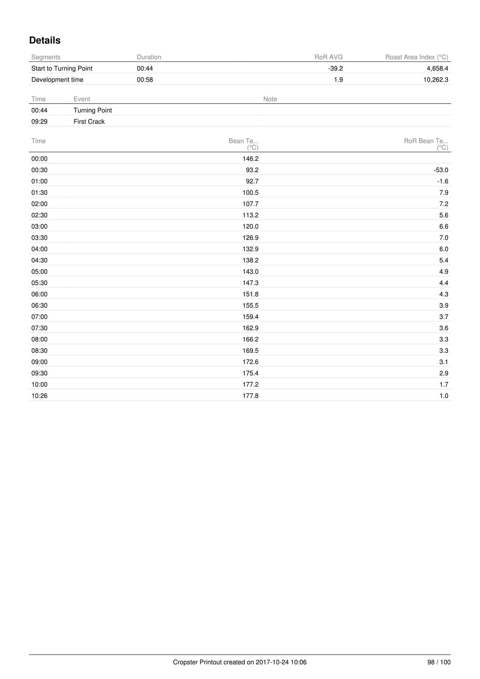 Characteristics of the coffee lot