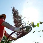 Coffee picking only occurs at peak maturation. The beans are picked by hand over cloths to avoid contact with the ground.