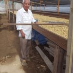Oscar´s parents heritage a plot of land to Oscar and he began to cultivate it with coffee and that’s how he started his coffee farm, now he wants to give to his children a good and stably patrimony. Located in Ojo de Aguita, Concepcion del Sur, Santa Barbara. Main product grown in this area is coffee. The farm is located in the Buffer Zone of the Mountain of Santa Barbara, an ecological reserve declared as a National Park that has the same name as the mountain. It is one of central America´s least explored and most diverse ecosystems, consisting of 321.23 Km2 of clouded forest, tropical rainforest and pine forest. A wide variety of fauna such as Lowland paca, squirrels, raccoons, wild cats, parrots, mountain rooster and birds that have made their homes here, as well as a range of trees such as Pine, cedar, mahogany, laurel tree, avocado tree, ferns and other native trees and orchids. The population of this zone is originally of the Lenca ethnic, and many customs and traditions have been inherited from them. Coffee growing is the primary activity for direct and indirect generation of income and employment for this city. There are 234 coffee growers that grow almost 750 hectares and produce 11,281 sacks of coffee (an average of 15 sacks per hectare) that are about 90% small growers, with coffee as their main income source and basis for the majority of the families economy. The harvest begins in January and ends in June, done manually for which pickers are brought in from Las Vegas and also from nearby. Before the picking begins, the workers are oriented to only cut ripe cherries and to transport them to collection areas, using clean bags. The processing is done in a wet mill using clean water from the mountain. The coffee is then sun dried using IHCAFE´s solar dryers. The coffee is then transported by mule since there are no roads that access the farm. This is one of the most difficult tasks due to the steepness and difficulty of the trail. As a coffee grower son, his father Martin Tinoco, originally from Quelepa, taught him how to grow coffee as a small boy. In the year 1998, his farm suffered a lot of damage with Hurricane Mitch, which forced him to move to the highlands of Ojo de Aguita, were Don Martin establishes his farm and eventually he inherits in 2006 to his son Oscar Edgardo. He considers that his success is based on discipline and in having a good processing operation.
